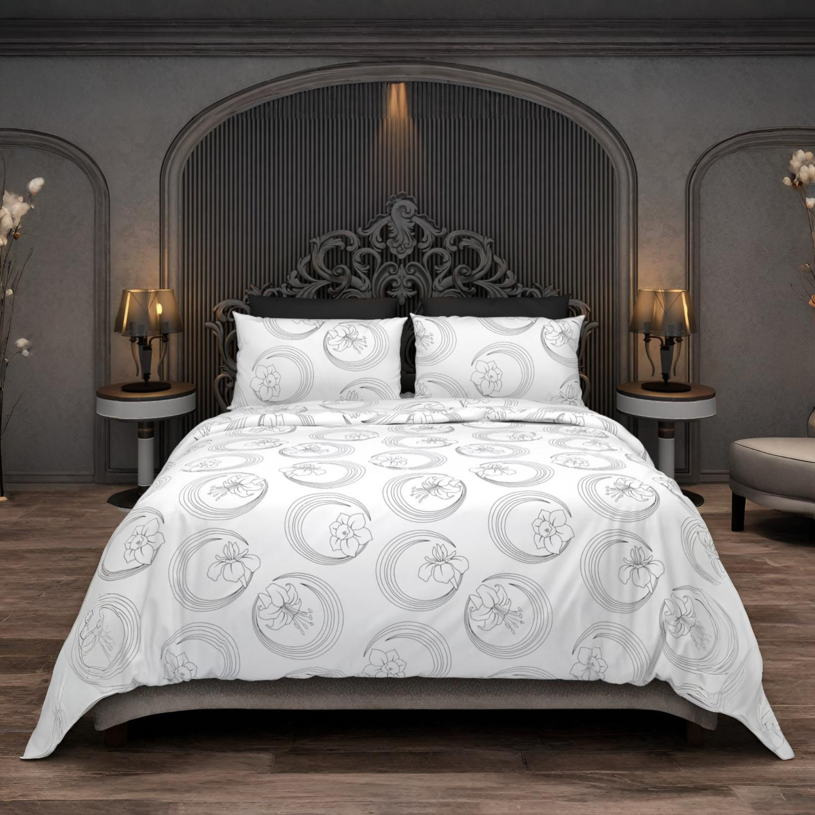 Bring home elegance with simplicity through the Black & White Flower Bedsheet, a perfect blend of modern minimalism and timeless comfort. Designed with refined circular floral motifs in classic monochrome, this bedsheet adds a calm, stylish statement to your bedroom décor.