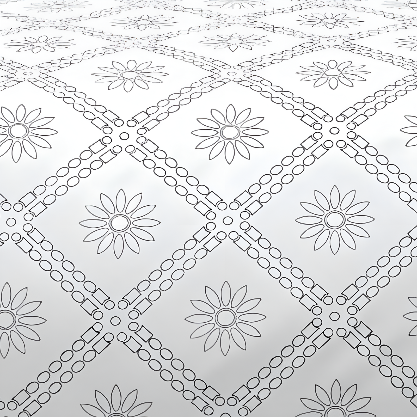 🔲 Geometric Floral Design – Classic square pattern with delicate floral centers