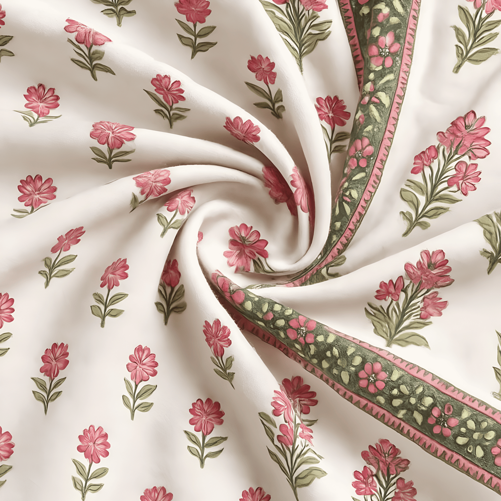 🌸 Design: Pink floral motif with traditional block-print-inspired border